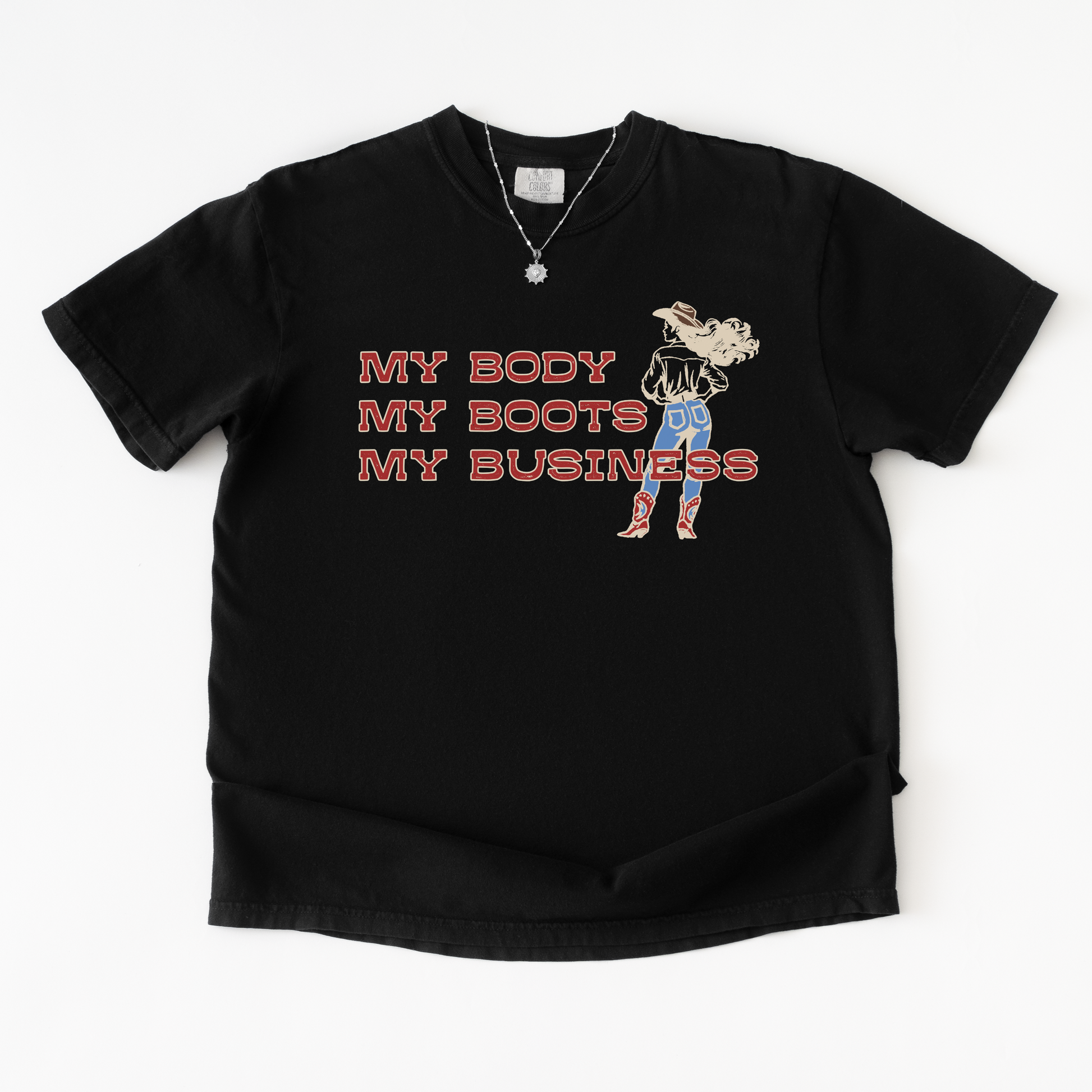 Say it loud, say it proud. This vintage-inspired western graphic tee is for the cowgirl who knows exactly where she stands — and doesn't need your opinion about it. My Body. My Boots. My Business. says everything that needs to be said.